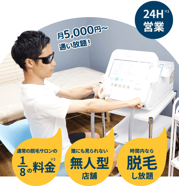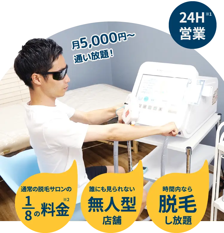 受付もいない”完全無人”店舗のため、人件費を大幅削減。そのため、「一般的な脱毛サロン」「スタッフ常駐セルフ脱毛サロン」と比べ、驚きの低価格でご提供ができます。
